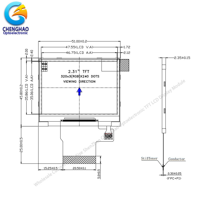 * CH231QV07A to kolor aktywny matrycy płynnych kryształów wyświetlacza (LCD) typu transmisywnego.